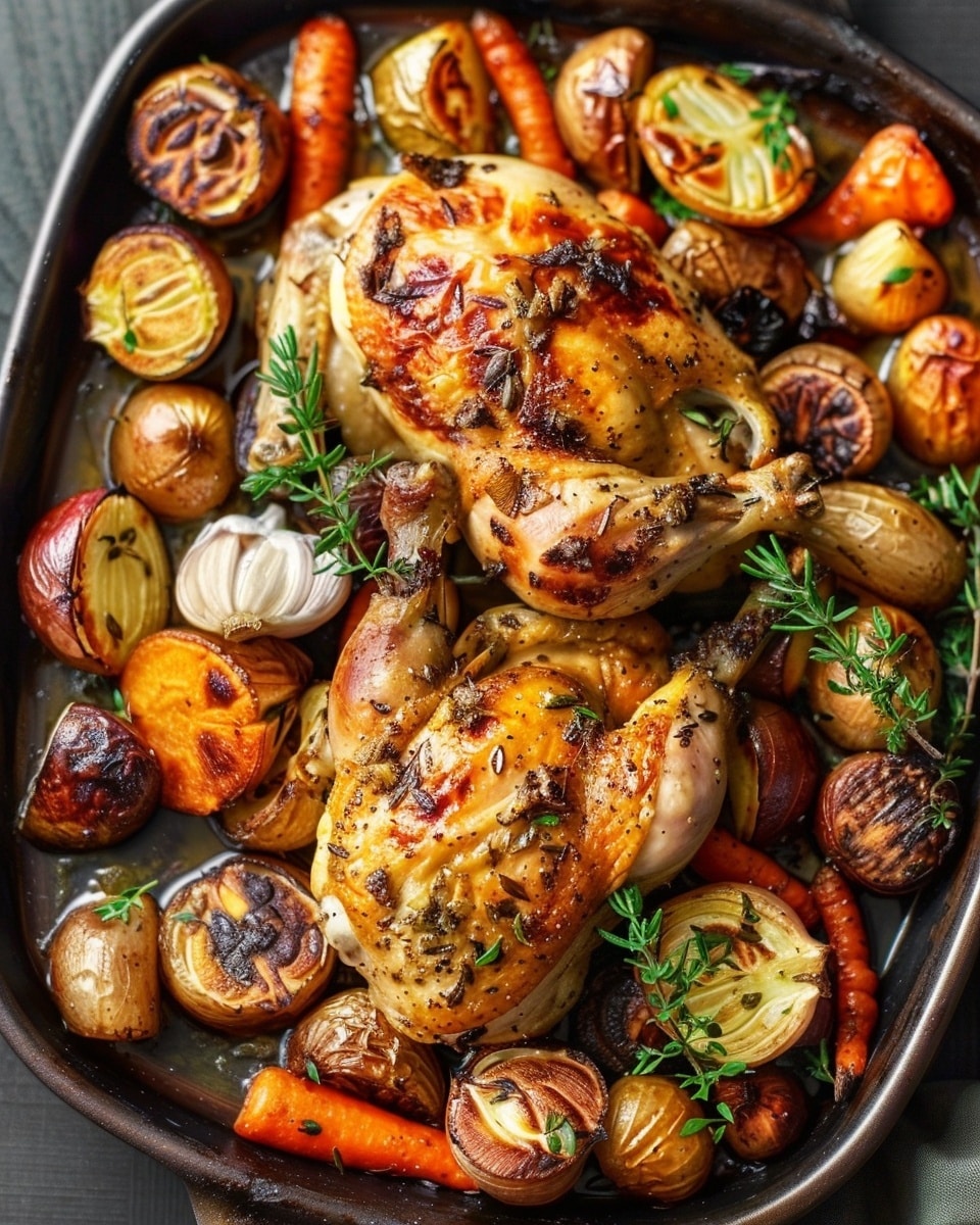 Roasted Garlic Chicken and Vegetables is one of my favorite all-in-one meals—it’s cozy, flavorful, and incredibly easy to make. I love how the roasted garlic brings everything together and how the chicken comes out juicy with crispy skin. Whether I’m feeding the family or just craving something simple and satisfying, this recipe always delivers on flavor, warmth, and ease.