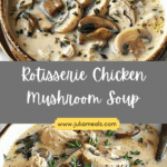 Rotisserie Chicken Mushroom Soup is a hearty, comforting one‑pot soup that uses shredded rotisserie chicken, earthy mushrooms, aromatic vegetables, and a rich broth (optional cream) to deliver deep flavor with minimal effort.