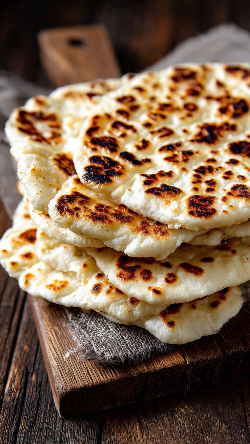 I sometimes brush the naan with butter or olive oil after cooking. When I want extra flavor, I sprinkle garlic powder, herbs, or salt on top. I also enjoy turning it into garlic naan by brushing it with melted butter and minced garlic.