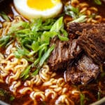 Slow cooker beef ramen noodles are a cozy, flavorful meal featuring tender slow-cooked beef, savory broth, and slurp-worthy noodles. This easy dish is a homemade twist on classic ramen, made with minimal effort.
