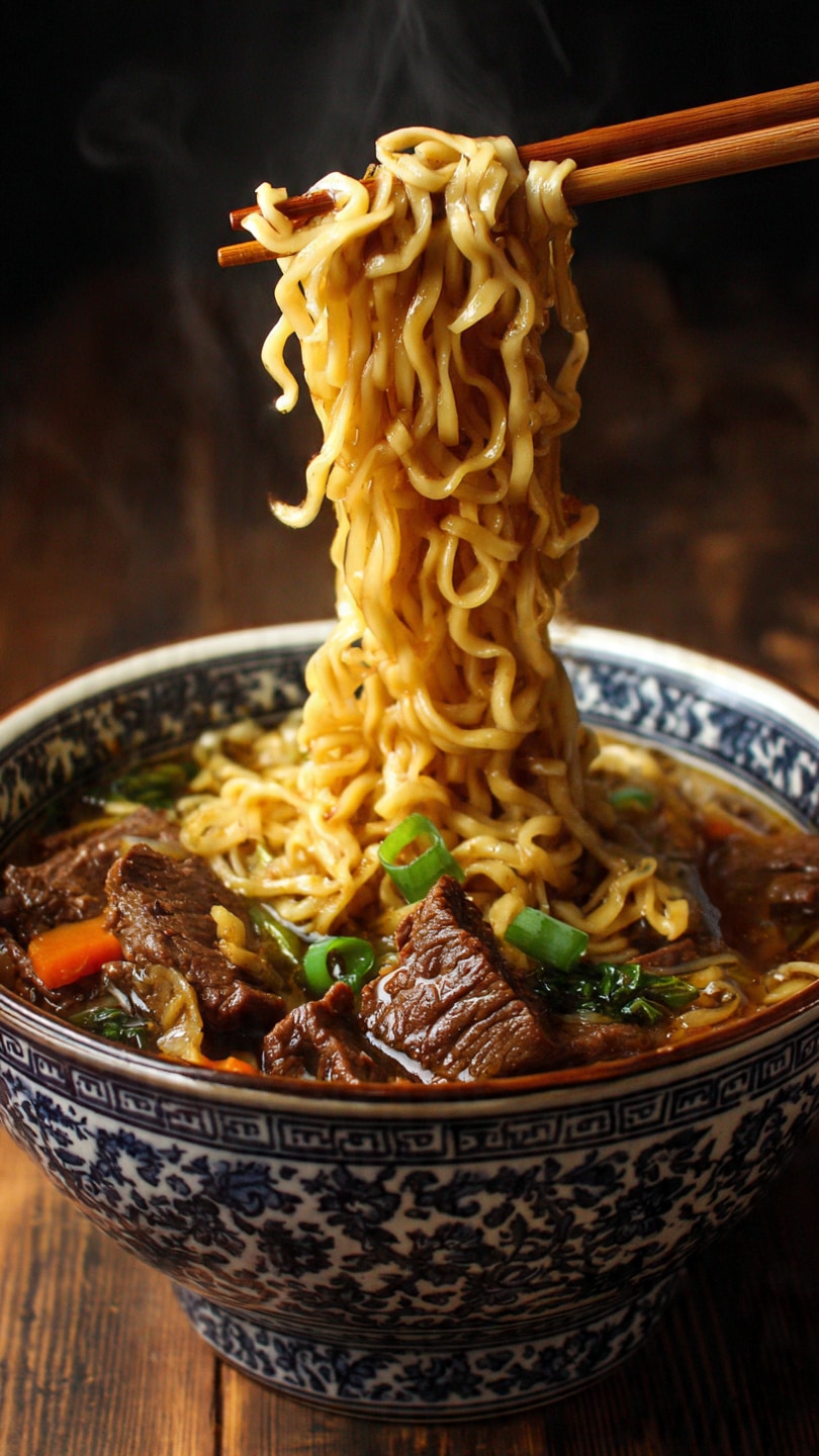 Sometimes I switch the beef for chicken thighs for a different flavor. I’ve also used miso paste or a dash of sriracha in the broth for extra depth and heat. For a more veggie-forward version, I double up on mushrooms, spinach, and edamame. I like experimenting with different types of noodles too—udon or rice noodles work great here.