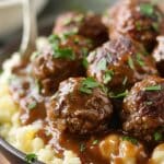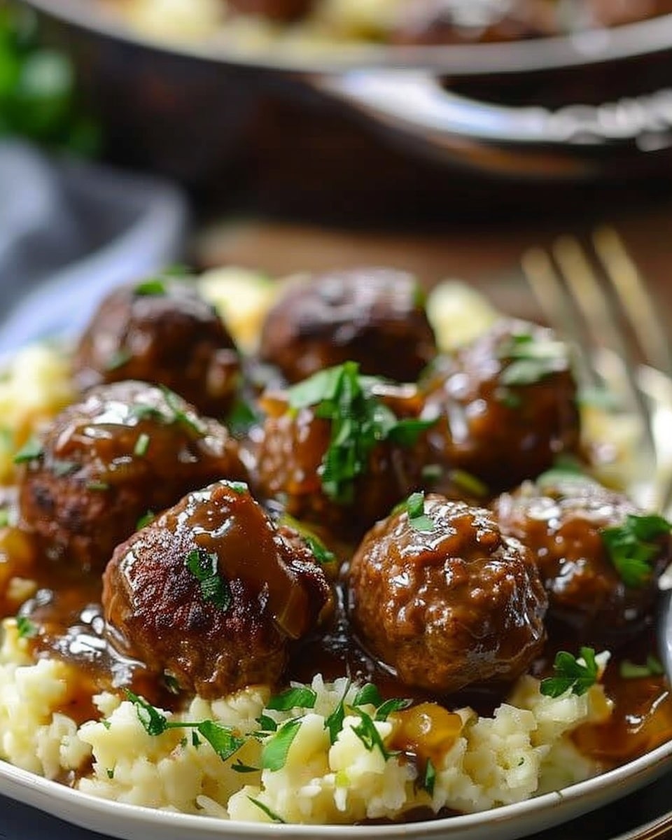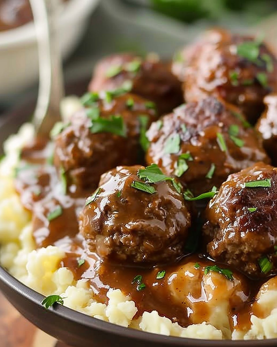I love how hearty and satisfying these meatballs are. They have that nostalgic Salisbury steak flavor, but in a fun, bite-sized form. It’s an easy, hands-off meal that’s perfect for busy days—and the gravy alone is worth making extra.