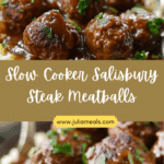 These Salisbury steak meatballs are juicy, flavorful, and slow-cooked in a rich mushroom gravy. Made right in your slow cooker, they’re the ultimate comfort food—easy to prepare and perfect for family dinners or cozy weeknights.
