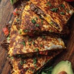 If I have leftovers, I store them in the fridge in an airtight container for up to 2 days. To reheat, I place them back in a skillet over medium heat for a few minutes per side to re-crisp the tortilla and warm the inside. The microwave works too, but the tortilla won’t stay crispy.
