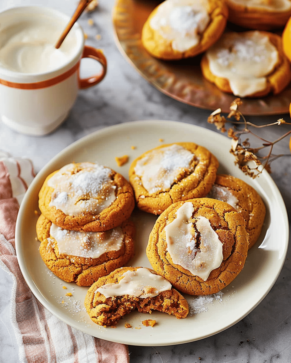 Soft Pumpkin Cookies are the perfect fall dessert—pillowy, moist, and spiced with cinnamon, nutmeg, and cloves. Made with pumpkin purée and finished with an optional vanilla glaze, these easy pumpkin cookies are a cozy, comforting treat everyone will love.