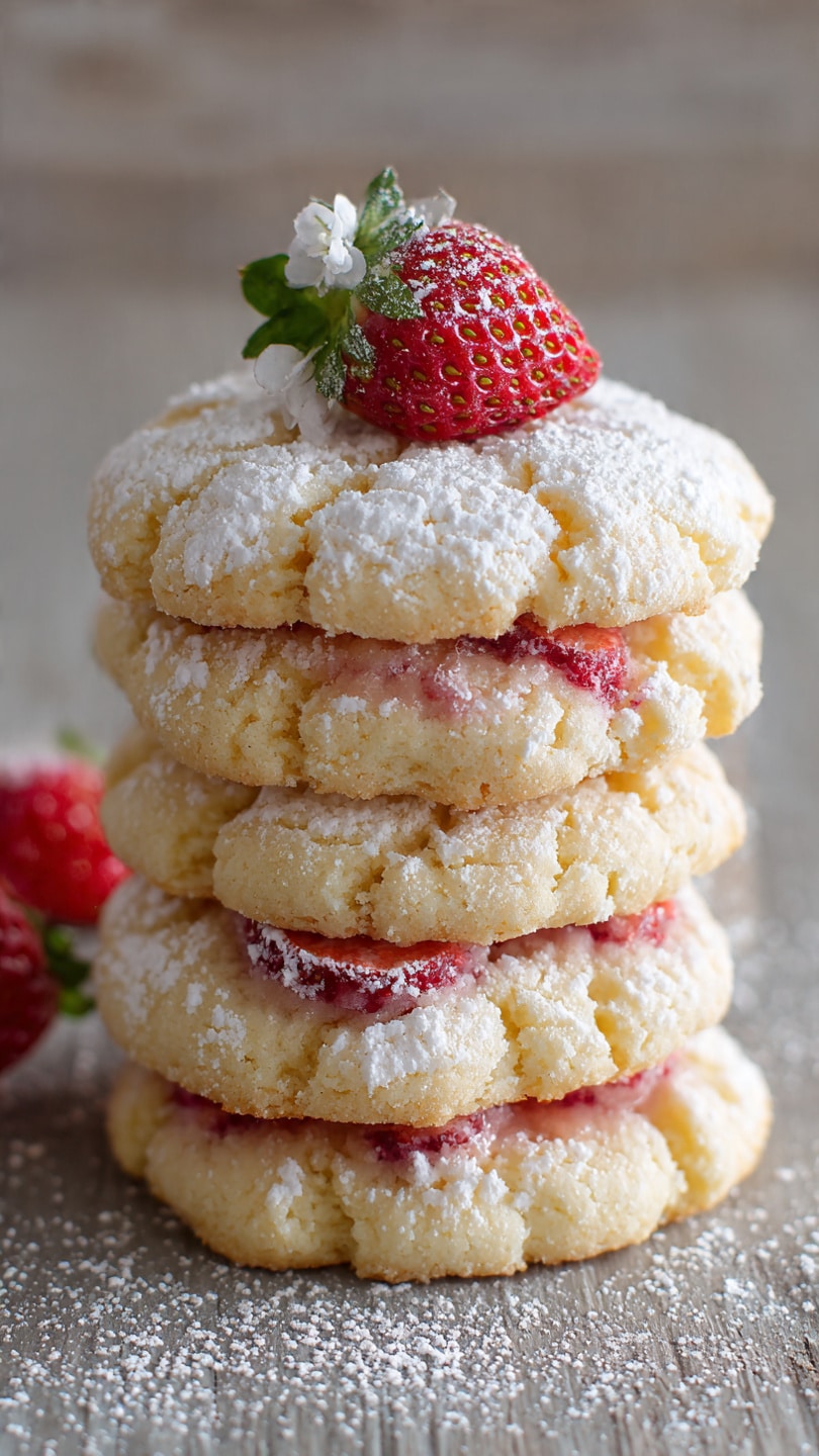 Soft strawberry shortcake cookies are tender, cake-like treats filled with juicy strawberry bits. Inspired by classic strawberry shortcake, these cookies are rich, fluffy, and perfect for a fruity and nostalgic dessert or snack.