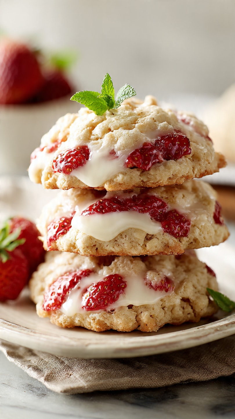 I love how these cookies combine the fluffy texture of a biscuit with the sweet softness of a sugar cookie. Fresh strawberries give them a burst of flavor, and a touch of cream makes them rich and tender. They’re easy to mix up, and I don’t need a mixer or any fancy steps. These are perfect for spring and summer baking, picnics, or just a sweet afternoon snack.
