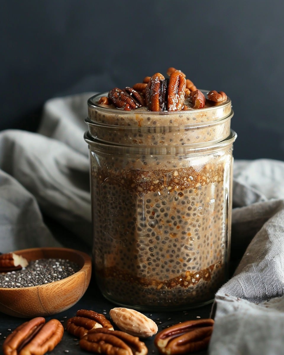 - Once pudding is set, layer it in jars with the pecan mixture—starting with chia pudding, then pecans, and repeating as desired.