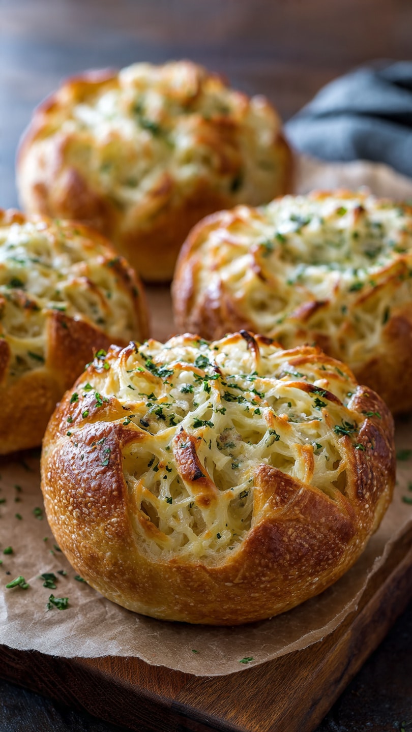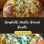 Spaghetti Garlic Bread Bowls combine two comfort food classics into one delicious and creative dish. Crispy garlic butter-coated bread bowls are filled with saucy spaghetti and topped with melty cheese for the ultimate cozy meal.