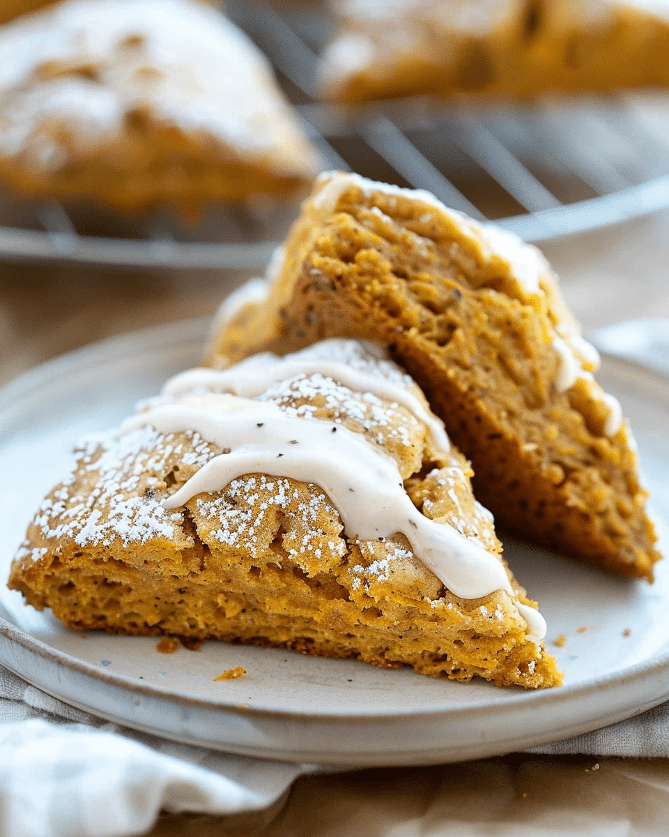 Spiced pumpkin scones are warm, tender pastries filled with cozy autumn spices and a subtle sweetness. Perfectly crumbly with crisp edges and a moist interior, they pair beautifully with coffee or tea and make a delightful seasonal treat.