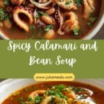 I make this Spicy Calamari and Bean Soup when I want something bold, hearty, and a little different from my usual seafood dishes. Tender calamari simmers in a rich, spiced tomato broth with creamy beans for a satisfying and comforting bowl.