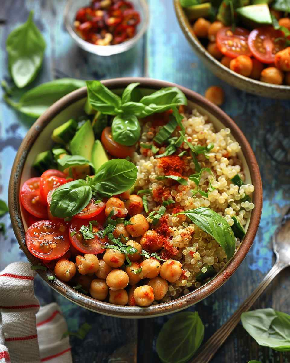 I enjoy how this recipe is packed with plant-based protein and vibrant flavors. The chickpeas turn slightly crispy with a spicy kick, while the quinoa provides a light and fluffy base. I also like how customizable these bowls are, making it easy to add my favorite vegetables or toppings.