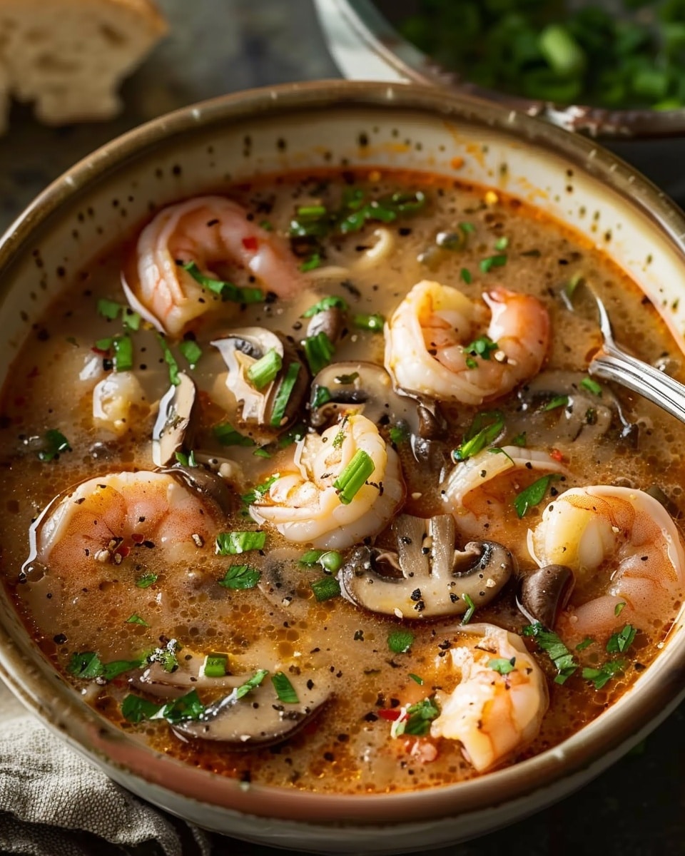 Spicy Shrimp & Ginger Mushroom Soup is my go-to when I want something quick, warming, and packed with flavor. The tender shrimp, spicy broth, and fragrant ginger make it a dish that’s both light and comforting. Whether I’m making it as a quick weeknight dinner or a soothing bowl for a cold day, it always hits the spot.