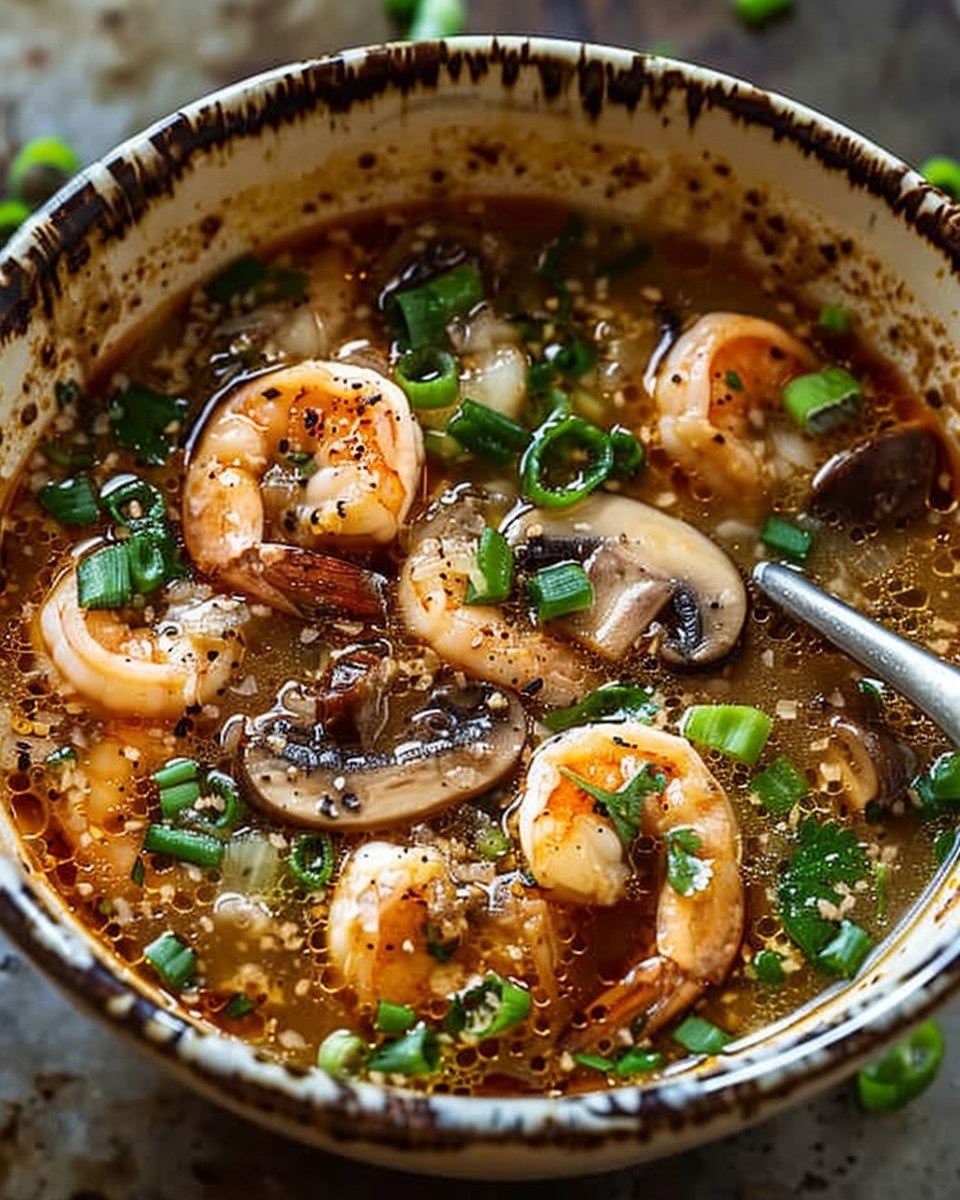 A quick, flavorful, and comforting soup featuring tender shrimp, earthy mushrooms, warming ginger, and a spicy broth. Perfect for chilly days or light yet satisfying meals.