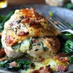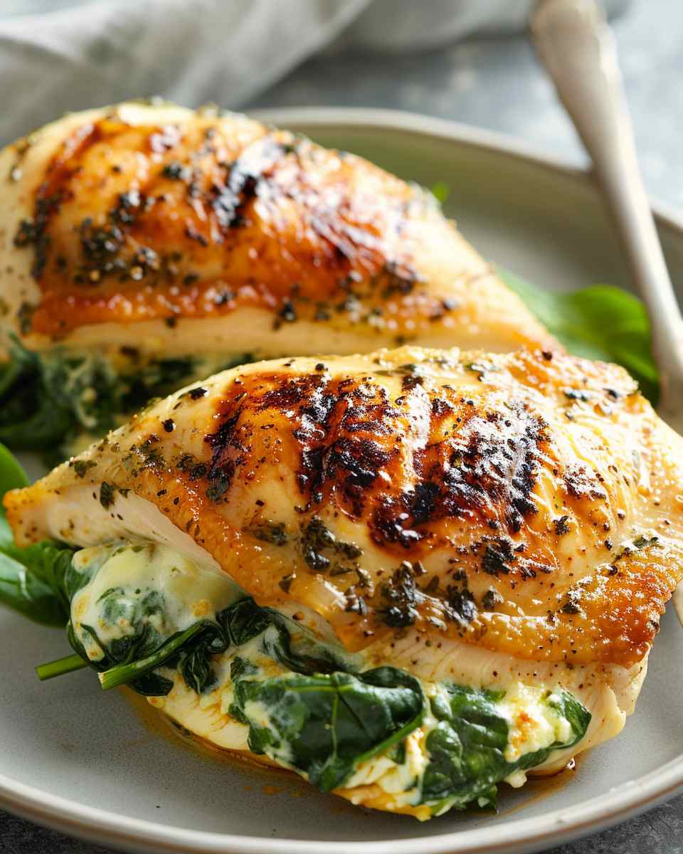 Juicy chicken breasts stuffed with a creamy spinach and cheese filling, seared to golden perfection and baked for a rich, comforting, and elegant meal.