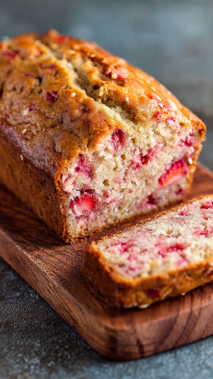 Strawberry Banana Bread is a soft, moist, and fruity twist on the classic banana bread, combining ripe bananas and juicy strawberries into a comforting and flavorful loaf perfect for breakfast, snacking, or dessert.