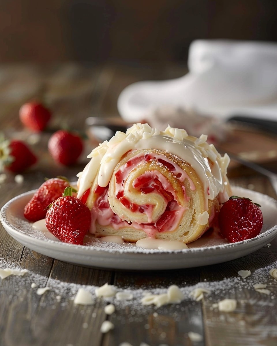 If I’m short on time, I sometimes use store-bought cinnamon roll dough and just add the cheesecake and strawberry layers. It’s a great shortcut.