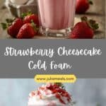 A creamy and indulgent strawberry cheesecake cold foam that transforms any iced coffee into a café-style treat with rich, fruity, and lightly sweet flavors.