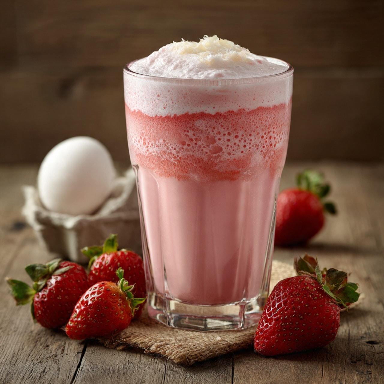 I blend or whisk the mixture until it becomes smooth and slightly thickened. Then I add the strawberry syrup or puree and mix again until the foam is light and fluffy.