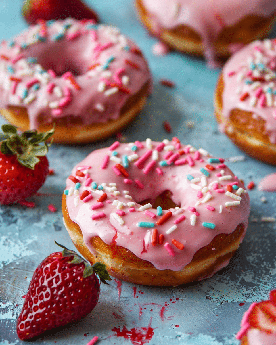 - Mix puréed strawberries, powdered sugar, and lemon juice for glaze. Dip or drizzle over donuts.