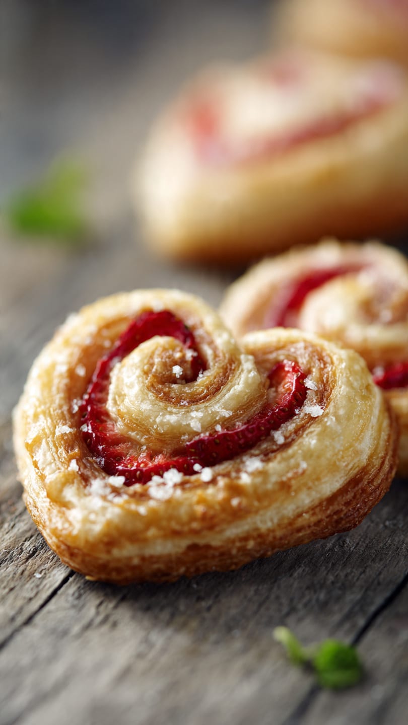 Strawberry palmiers are elegant, flaky pastries made from puff pastry rolled with sweet strawberry jam, then baked until golden and crisp. These heart-shaped treats are perfect for tea time, brunch, or a simple yet impressive dessert.