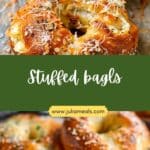 This recipe makes about 6–8 stuffed bagels, depending on size. It takes around 10–15 minutes to prep and 20–25 minutes to bake, so I usually have them ready in about 35–40 minutes total.