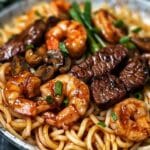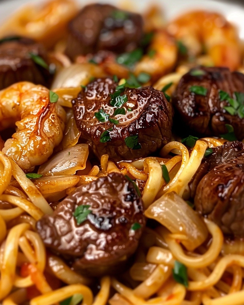 Surf and Turf Garlic Noodles is a bold, savory dish featuring buttery garlic noodles tossed in a rich umami sauce, topped with juicy seared ribeye steak and succulent shrimp. This restaurant-style noodle recipe is perfect for special occasions, date night, or anytime you want to impress with an indulgent, flavor-packed meal at home.