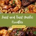 I love how this dish combines the best of land and sea—perfectly seared steak and plump, garlicky shrimp—served over a bed of noodles that are packed with bold flavor. The garlic butter sauce is loaded with soy, oyster, and fish sauce for a deep, umami punch, balanced with a touch of sweetness from brown sugar and richness from Parmesan. It’s indulgent, satisfying, and always a crowd-pleaser when I make it for guests or date nights at home.