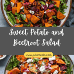 This sweet potato and beetroot salad is a vibrant, earthy dish that combines roasted root vegetables with crisp greens, creamy cheese, toasted nuts, and a tangy vinaigrette. It’s hearty, nourishing, and perfect as a meal or colorful side.