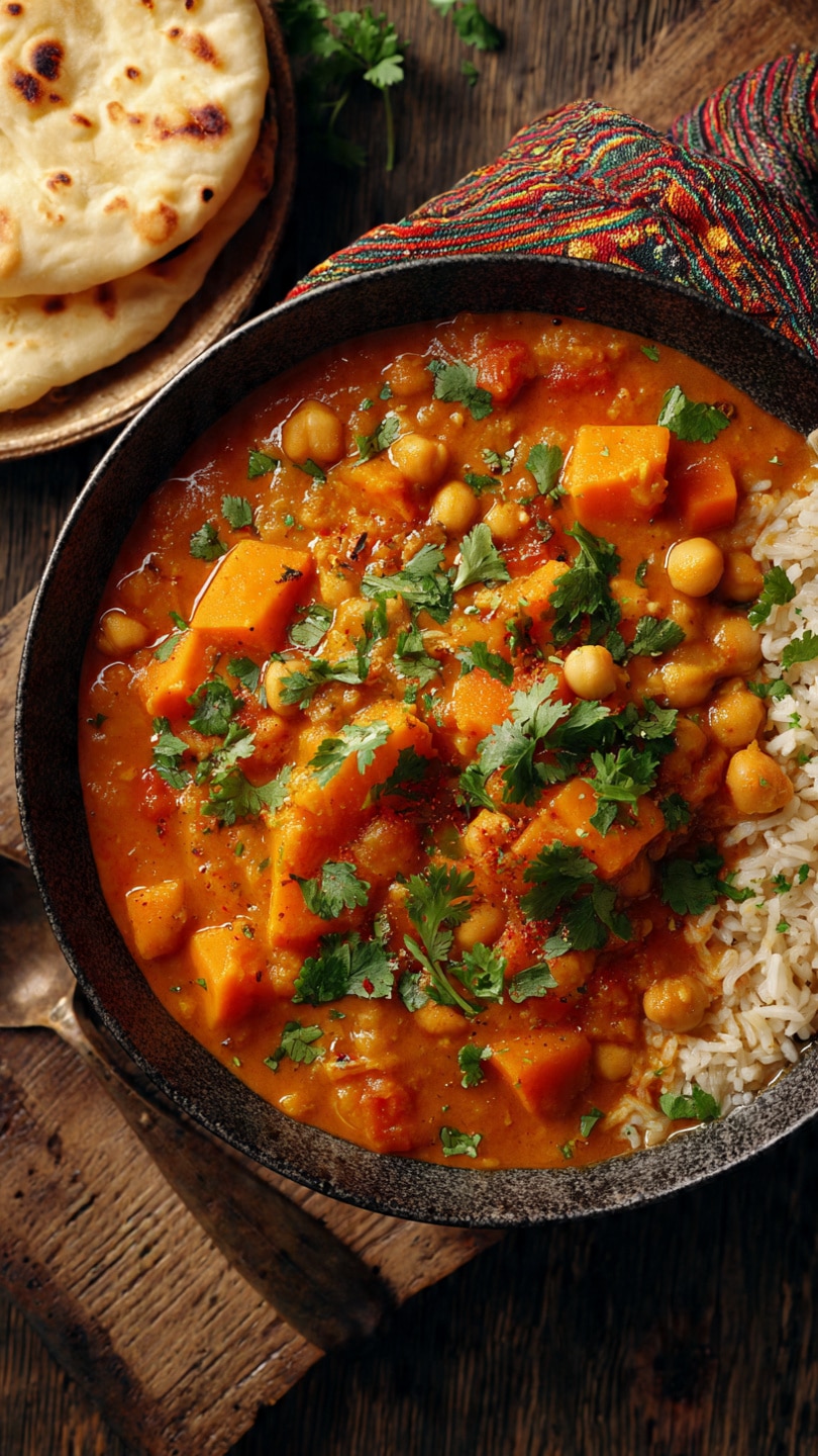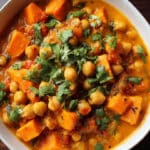 Sweet potato and chickpea curry is a hearty, one-pot vegan dish made with tender sweet potatoes, protein-rich chickpeas, and a fragrant coconut curry sauce. It’s comforting, flavorful, and perfect for weeknight dinners or meal prep.
