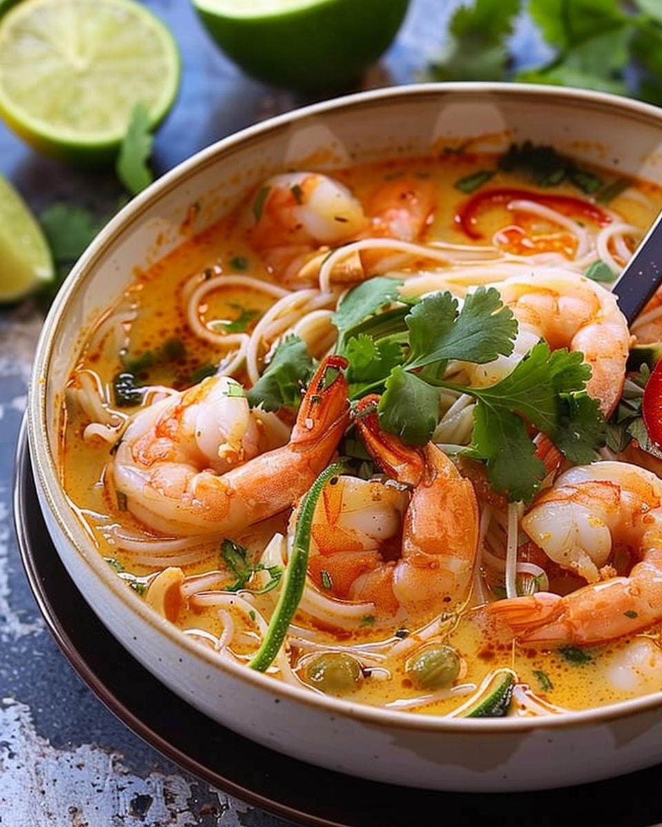 Thai Shrimp Coconut Noodle Soup is a bowl of pure comfort with bold Thai flavor. I love the creamy broth, the tender noodles, and the juicy shrimp—it’s easy to make, yet feels like something special. Whether I need something soothing or spicy, this soup always hits the spot.