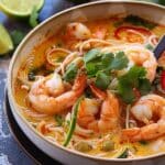 This creamy and fragrant Thai Shrimp Coconut Noodle Soup is the ultimate comfort in a bowl. Juicy shrimp, tender rice noodles, and a rich coconut broth infused with lemongrass, lime, and Thai red curry make this a fast, one-pot meal that’s bursting with bold Thai flavors. Perfect for cozy nights or impressing guests, it’s ready in just 30 minutes and totally restaurant-worthy.