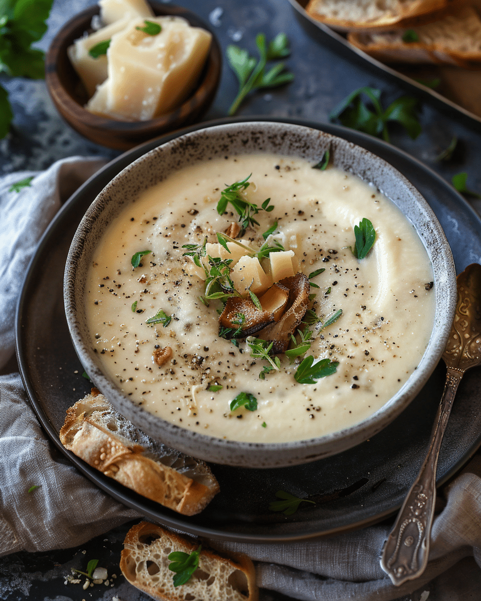 I love this soup because it feels both comforting and elegant. The creamy base is full of flavor thanks to the Parmesan, garlic, and Italian herbs. I also enjoy how flexible it is — I can add chicken, sausage, or white beans to bulk it up, or keep it veggie-forward with leafy greens and sun-dried tomatoes. It’s perfect with crusty bread on the side and makes an easy lunch or dinner any time of year.