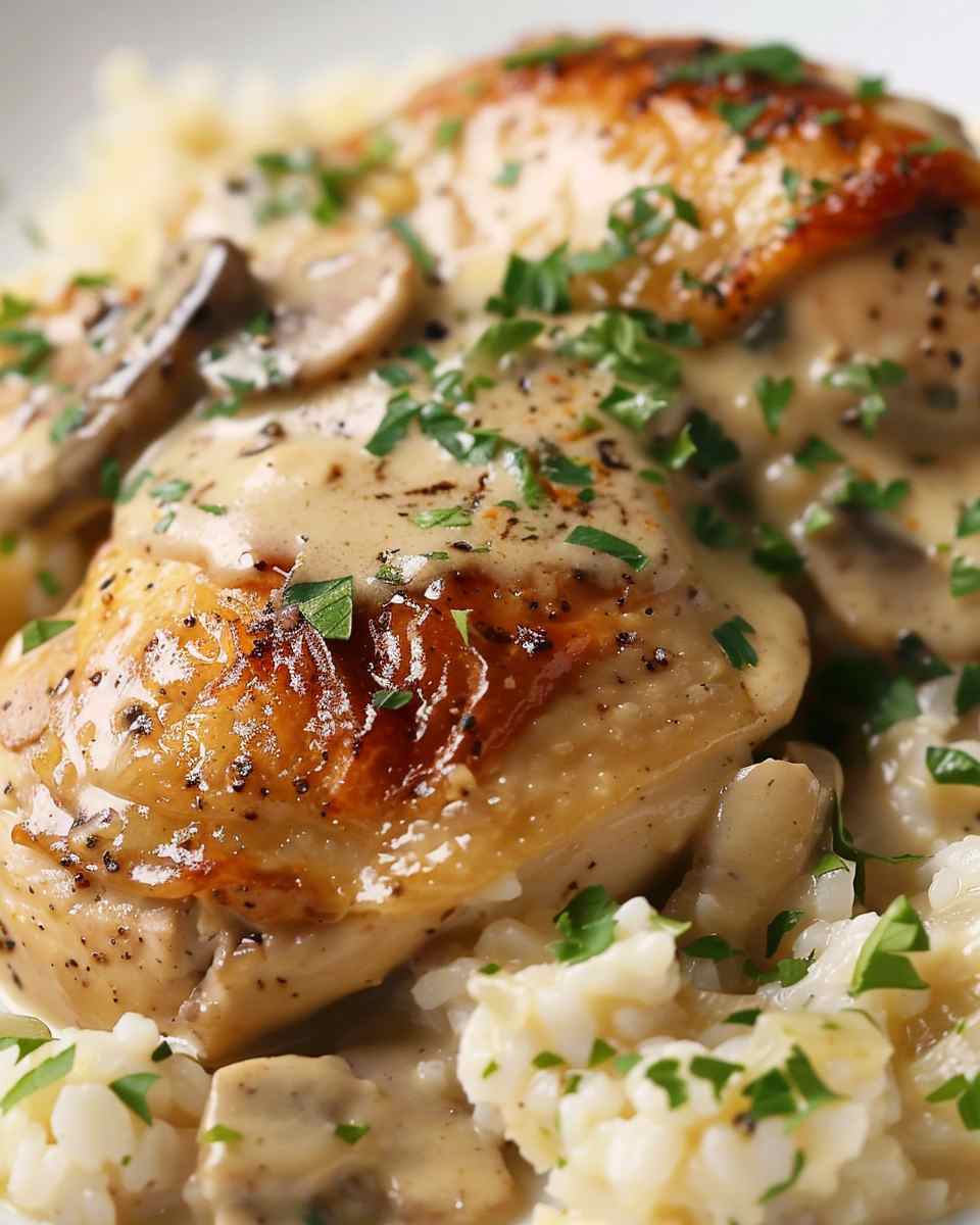 - Serve warm, spooning the creamy sauce over the chicken and garnish with fresh herbs.