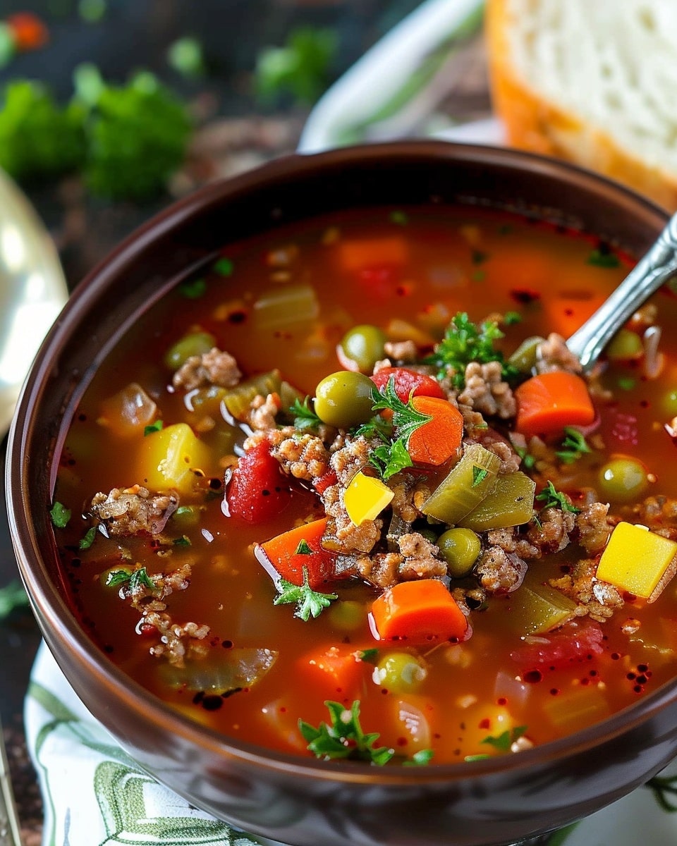 This Vegetable Ground Beef Soup is a hearty, one‑pot meal made with lean ground beef, tender vegetables, and a flavorful broth. It’s easy to make, budget‑friendly, and ideal for cozy weeknight dinners or make‑ahead lunches. Packed with protein, fiber, and comfort, this nourishing soup is freezer‑friendly and perfect for meal prep.