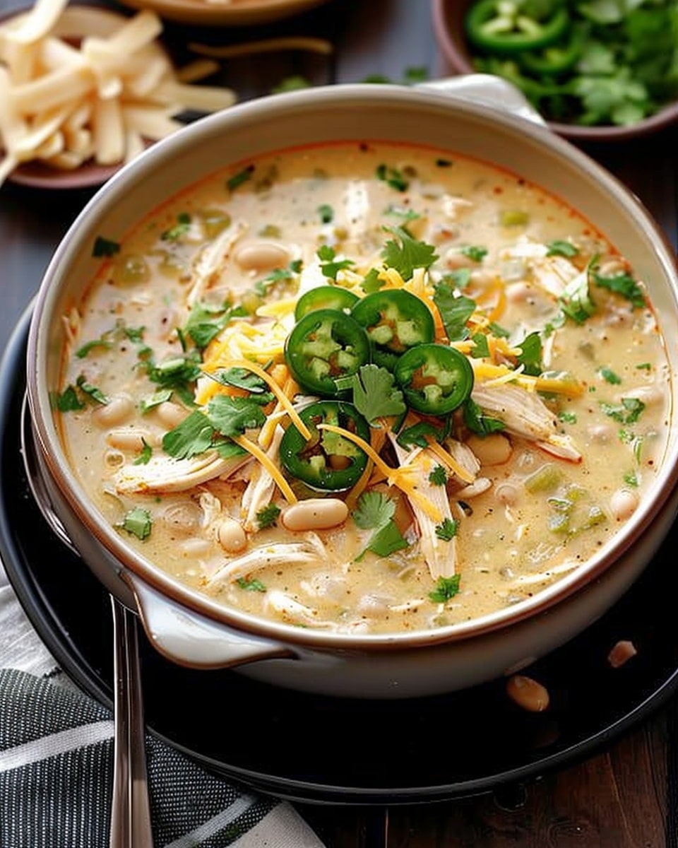 White chicken chili is a creamy, comforting, and hearty dish made with tender shredded chicken, white beans, green chiles, and a rich blend of spices. It’s a cozy and protein-packed meal perfect for chilly days, game nights, or easy meal prep.