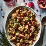 This zaatar spiced pomegranate pistachio stuffing is a vibrant, modern twist on traditional stuffing. With toasted bread, warm Middle Eastern spices, crunchy pistachios, and sweet-tart pomegranate seeds, it’s a flavorful, colorful side dish perfect for holidays or special dinners. Fresh, fragrant, and easy to make ahead, it brings brightness and bold flavor to your table.