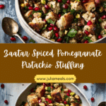 Zaatar spiced pomegranate pistachio stuffing is a vibrant twist on traditional stuffing that I love making when I want something bold, aromatic, and full of texture. It brings together warm Middle Eastern spices, crunchy nuts, sweet bursts of pomegranate, and tender bread all in one dish. Whether I’m serving it for the holidays or a special dinner, it always stands out.