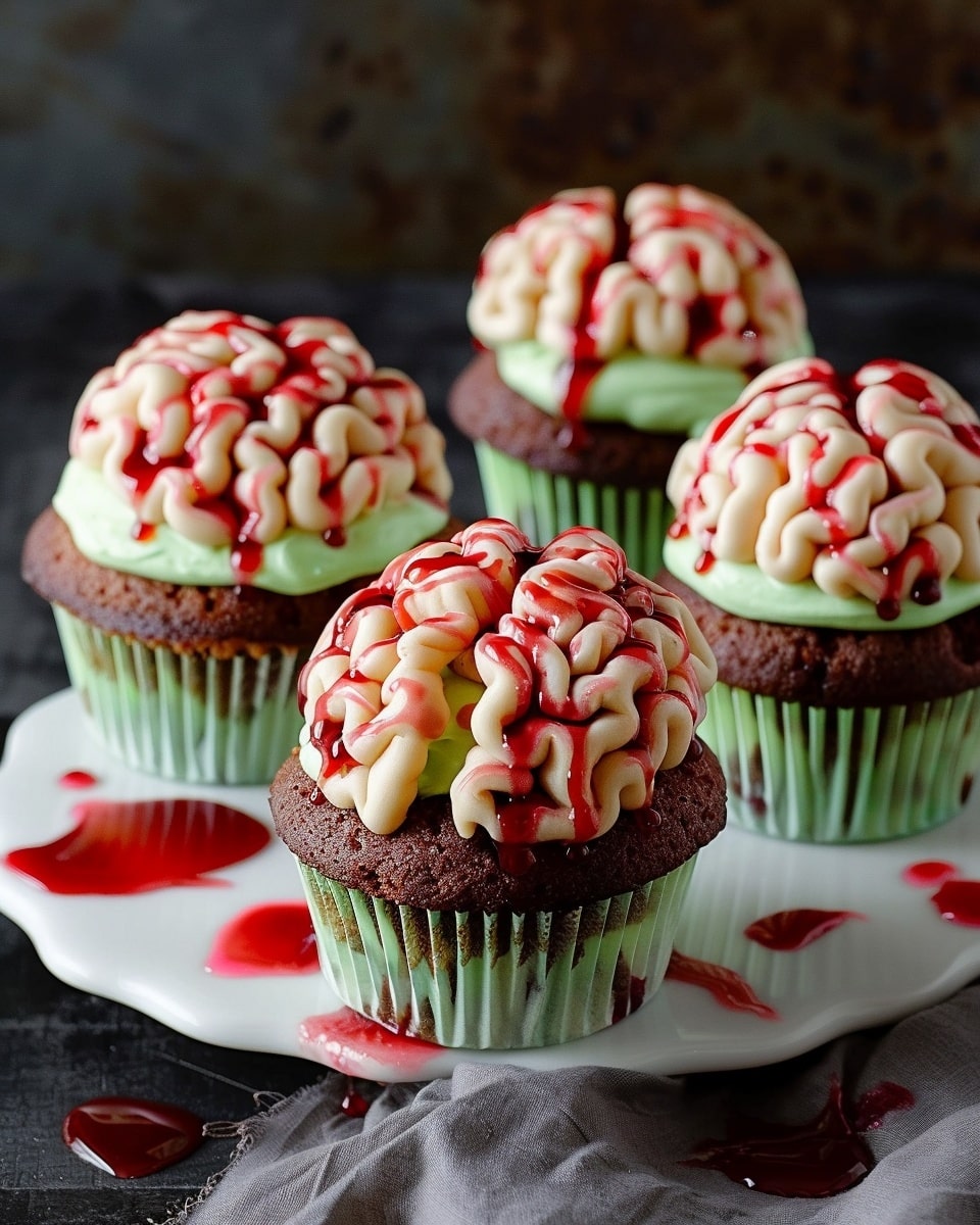 Zombie brain cupcakes are creepy, fun, and perfect for Halloween or any spooky-themed celebration. I love how they combine rich chocolate or red velvet cupcakes with a “brainy” swirl of frosting on top—sometimes with a surprise gooey filling inside. They look gruesome in the best way and always get a reaction, whether I’m serving them to kids or adults.