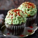 I store these cupcakes in an airtight container at room temperature for up to 2 days, or in the fridge for up to 5 days. The frosting holds its shape well if chilled. If I make them ahead, I store the cupcakes and frosting separately, then pipe the “brains” just before serving.